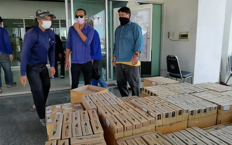 นายสิริบูรณ์ เผยอีกว่า การแจกหน้ากากผ้า หน้ากากอนามัย แอลกอฮอล์ เป็นการมอบให้ประชาชนเหมือนกับการระบาดของโคบิด-19 รอบที่ผ่านมา แต่ครั้งนี้เนื่องจากตำบลท่าทรายเป็นพื้นที่เฝ้าระวังเข้มงวด จึงใช้การส่งทางไปรษณีย์แทน เพื่อเป็นการป้องกันการระบาดที่อาจเพิ่มขึ้น สำหรับรอบนี้ได้จัดส่งทั้งหมดเกือบ 10,000 กล่อง ในแต่ละกล่องจะบรรจุหน้ากากผ้าหน้ากากอนามัย และเจลแอลกอฮอล์ ตามจำนวนคนในบ้านนั้นๆ ซึ่งคาดว่า ในวันศุกร์ที่จะถึงนี้ประชาชนจะได้รับกล่องนี้ครบทั้งหมด