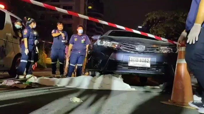 ที่เกิดเหตุพบรถเก๋งโตโยต้า รุ่นอัสติส สีเทา มีศพ นายอนุชา ชางหนอง อายุ 26 ปี รปภ.ร้านอาหารย่านซ.ทองหล่อ เสียชีวิตอยู่บริเวณล้อหน้าด้านขวา ใกล้ศพพบ รถจยย.ฮอนด้า รุ่นCBR สภาพพังเสียหาย ห่างไปพบ จยย.ฮอนด้า สกู๊ปปี้ไอ ส่วนคนเจ็บถูกนำส่งรพ.