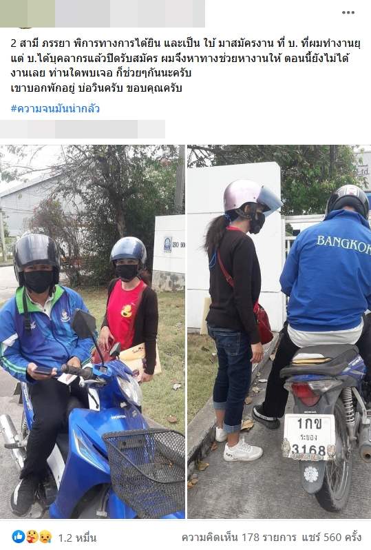 2 สามี ภรรยา พิการทางการได้ยิน และเป็น ใบ้ มาสมัครงาน ที่ บ. ที่ผมทำงานยุ แต่ บ.ได้บุคลากรแล้วปิดรับสมัคร ผมจึงหาทางช่วยหางานให้ ตอนนี้ยังไม่ได้งานเลย ท่านใดพบเจอ ก็ช่วยๆกันนะครับ