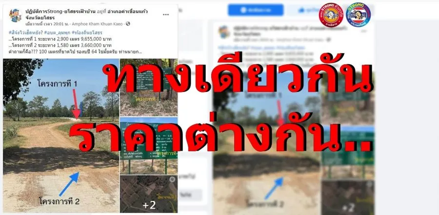 จากกรณีที่เพจ ปฏิบัติการStrong-ยโสธรเฝ้าบ้าน เปิดประเด็นกรณีโครงการก่อสร้างถนน คสล. สายทางเชื่อมระหว่างหมู่บ้านแหล่งแป้น ม.10 - บ้านดอนเขือง ม.8 ของ