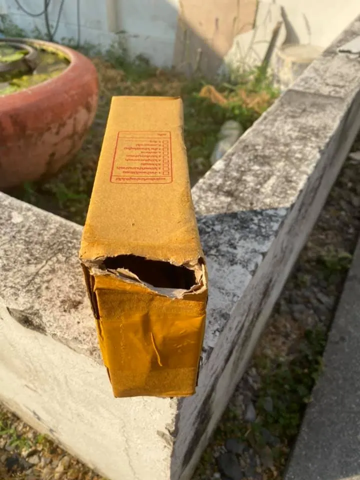 แต่กล่องดันตกไปในบ่อปลา พนักงานจึงปีนรั้วเข้าไปเก็บกล่องพัสดุ