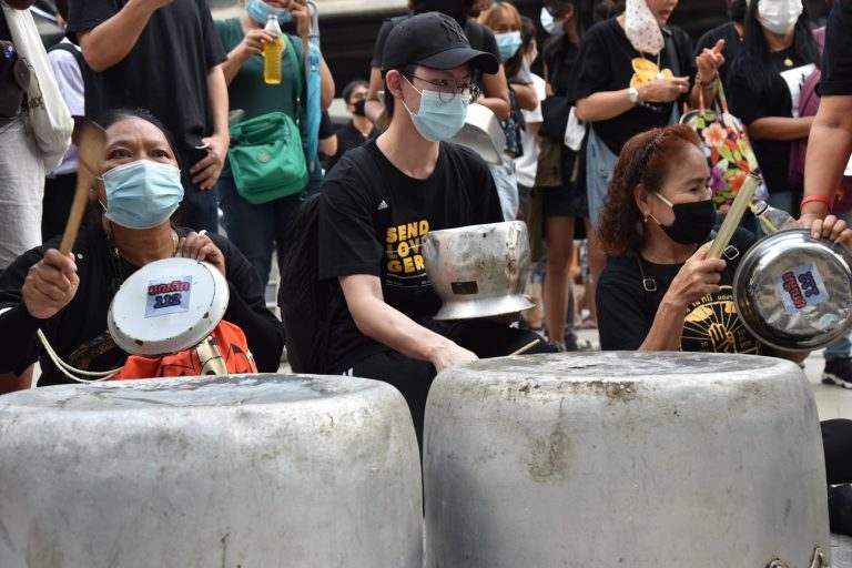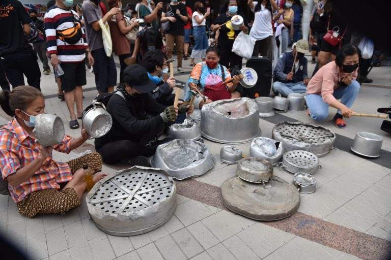 วันที่ 10 กุมภาพันธ์ ภายหลังจากที่กลุ่มราษฎรได้นัดรวมพลกันชุมนุมที่สกายวอล์ก ในกิจกรรม รวมพลคนไม่มีจะกิน ตีหม้อไล่เผด็จการ ภายหลังจากที่ ศาลไม่ให้มีการประกันตัว 4 แกนนำซึ่งประกอบด้วย นายพริษฐ์ ชิวารักษ์ นายอานนท์ นำภา นายสมยศ พฤกษาเกษมสุข และ นายปติวัฒน์ สาหร่ายแย้ม ตามความผิดตามประมวลกฎหมายอาญามาตรา 112 และมาตรา 116 ซึ่งกลุ่มราษฎรนัดรวมพลกันเรียกร้องให้มีการปล่อยตัว 4 แกนนำ และการทวงมาตราการเยียวยาจากรัฐบาล