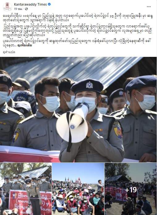 ဖေဖော်ဝါရီလ ၁၀ရက်နေ့ မှာ ပြည်သူနဲ့ အတူ လာရောက်ပူးပေါင်းတဲ့ ရဲတပ်ဖွဲ့ဝင် ၄၉ ဦးကို ဘုရားဖြူအနီး မှာ ဆန္ဒထုတ်ဖော်သူတွေက သွားရောက် ဝန်းရံ ခဲ့ပါတယ်။