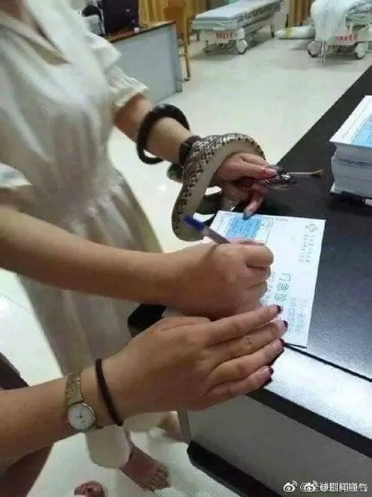 เธอได้ไปถึงโรงพยาบาลพร้อมกับโชว์งูที่เธอจับได้ให้หมอดู เพื่อที่ว่า คุณหมอจะได้ฉีดเซรุ่มถูก