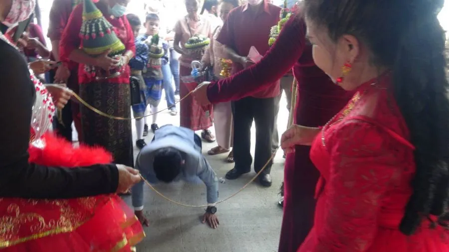 ..ที่ชลบุรี สาวหล่อหอบสินสอด 10 หมื่นพร้อมทอง 5 บาทแห่ขอสาวหลังคบมานาน 3 ปีอย่างสนุกสนานครื้นเครงขบวนยาวล้นซอยก่อนพบเจ้าสาวถูกพ่อตาทดสอบความฟิตร่างกายดันพื้น 20 ครั้ง เผยไม่กลัวใครเหยียดเพศเพราะความรักคือสิ่งสวยงามขอเป็นตัวแทนแสดงความรักในวันวาเลนไทน์