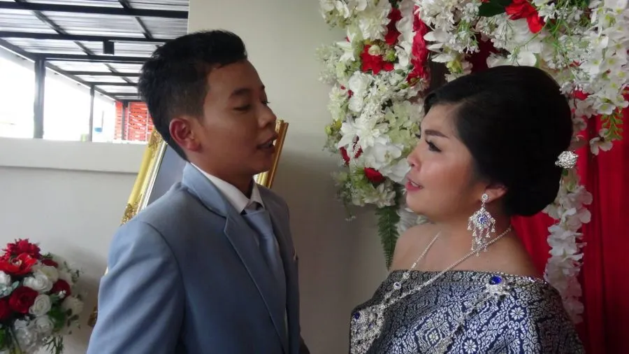 จากการสอบถาม น.ส.อังคณา พวงพรับ อายุ 28 ปี เจ้าบ่าวเปิดเผยว่าตนได้คบหากับฝ่ายเจ้าสาวมา 3 ปีพอมาถึงวันนี้ได้ฤกษ์ดีเป็นวันมงคลหรือวันแห่งความรัก 14 กุมพาพันธ์ วันวาเลนไทน์จึงได้บอกกับแม่และญาติอยากมาขอสาวที่ตนคบหาและแต่งงานให้ถูกตามพิธีและไม่เคยคิดว่าจะเป็นการเหยียดเพศอะไรเพราะไม่ว่าเพศไหนก็รักกันได้เหมือนกันสมัยนี้ไม่แปลกอะไรที่จะมี ชายรักชาย หญิงรักกับหญิงเพราะความรักคือสิ่งที่สวยงามเสมอในวันแห่งความรักนี้ตนขอเป็นตัวแทนของความรักให้กับคนไทยขอให้รักกันนานๆและดูแลคนรักให้ดีอะไรที่ผิดพลาดไปก็ให้อภัยกันเพราะความรักสวยงามเสมอ