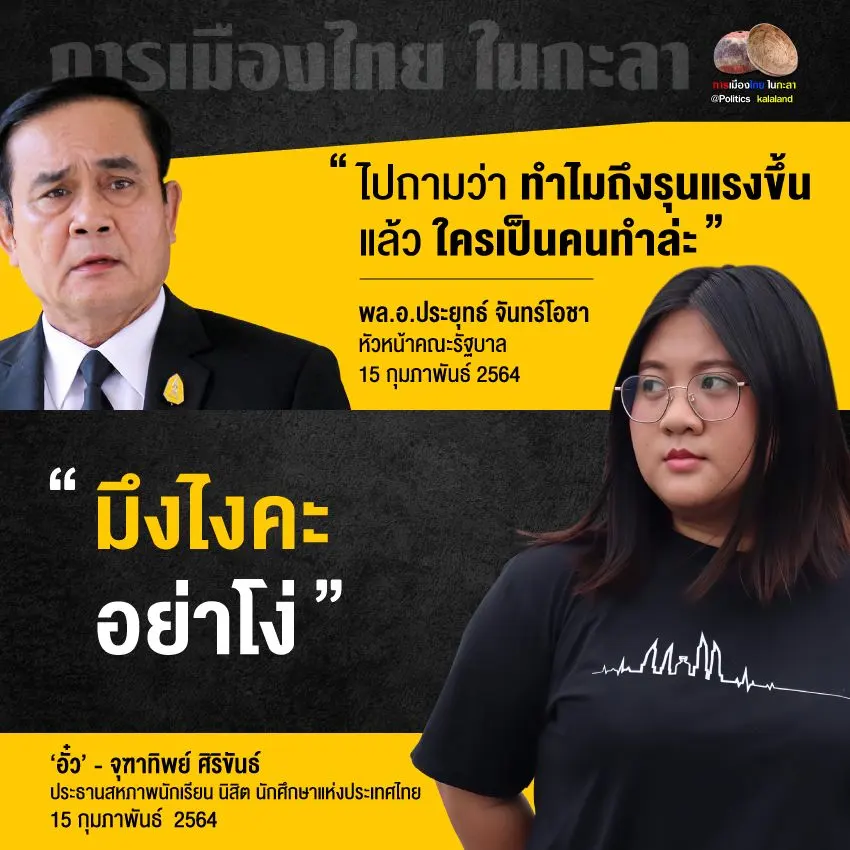 ก่อนเป็นประธานการประชุมคณะรัฐมนตรีที่ทำเนียบรัฐบาลวันนี้ (15 ก.พ.) พล.อ.ประยุทธ์ จันทร์โอชา นายกรัฐมนตรีและ รมว.กลาโหม ตอบคำถามสั้น ๆ เกี่ยวกับเหตุรุนแรงในการชุมนุม "นับ 1 ถึงล้าน คืนอำนาจให้ประชาชน" ของกลุ่ม “ราษฎร” บริเวณหน้าศาลหลักเมืองเมื่อวันที่ 13 ก.พ.