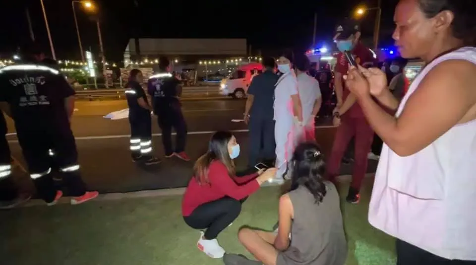 เหตุเกิดบนถ.สุขุมวิท ตรงข้ามศูนย์การค้าไมอามี่ ต.บางปู อ.เมืองสมุทรปราการ โดยมีพ่อตาและแฟนสาวยืนร้องไห้อยู่ข้างร่างผู้ตาย