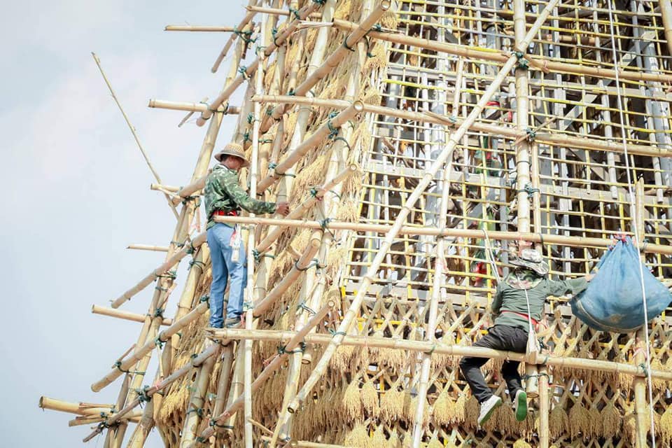 ชาวอำเภอสระใคร จ.หนองคาย กว่า 150 คน เตรียมมัดรวงข้าวกว่า 100,000 มัด เพื่อประดับพระธาตุ ช่วงยอดองค์พระธาตุรวงข้าว ให้เสร็จสมบูรณ์ภายในวันที่ 18 ก.พ.64 ก่อนจะมีพิธียกยอดฉัตรฉลองพร้อมพิธีเปิดงาน ในวันที่ 19 ก.พ.64 นี้