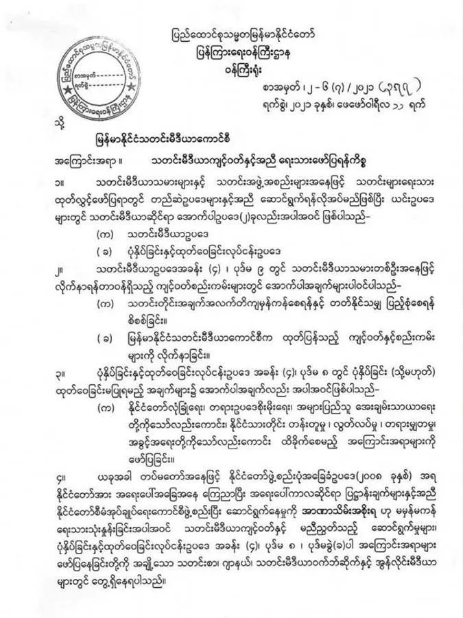 แถลงการณ์ดังกล่าวที่ลงวันที่ 11 กุมภาพันธ์ เรื่อง “จรรยาบรรณการรายงานข่าวของสื่อ” โดยประเด็นสำคัญระบุว่า การเรียกรัฐบาลทหารเมียนมาว่า “รัฐบาลรัฐประหาร” นั้นเป็นการผิดจรรยาบรรณสื่อ