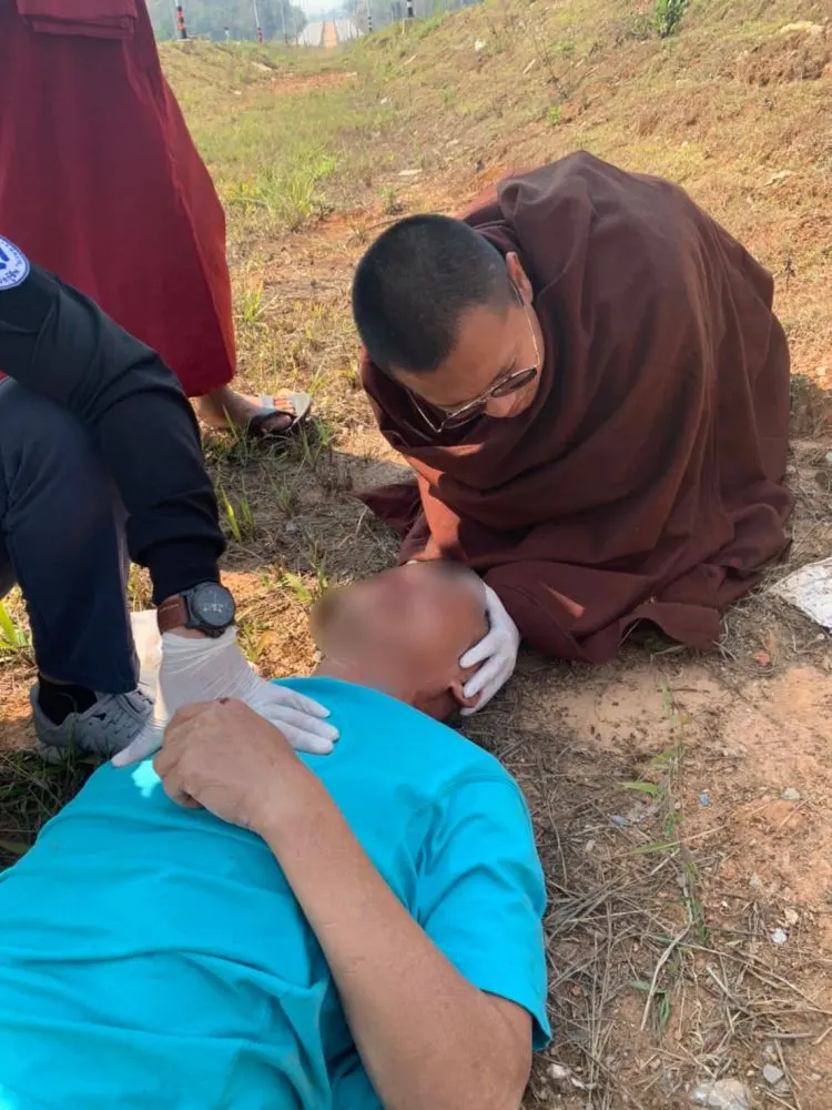 โซเชียลชื่นชม พระสงฆ์ช่วยปฐมพยาบาล คนเจ็บที่ประสบอุบัติเหตุ