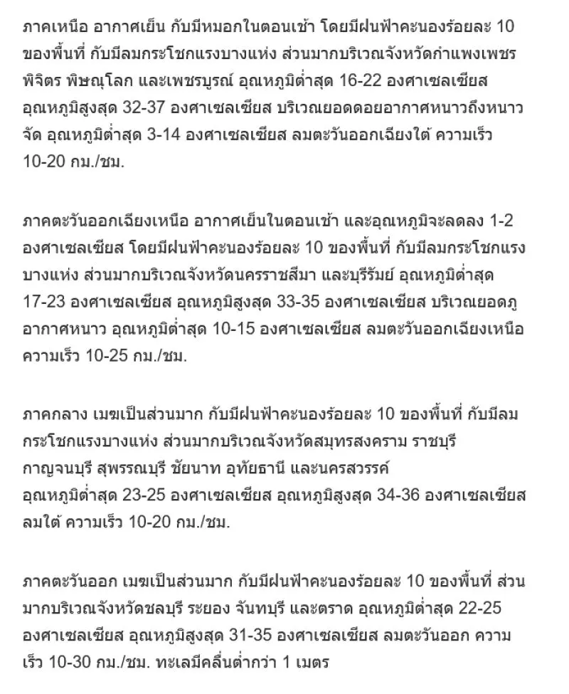 พยากรณ์อากาศสำหรับประเทศไทยตั้งแต่เวลา 06.00 น.วันนี้ ถึง 06.00 น.วันพรุ่งนี้