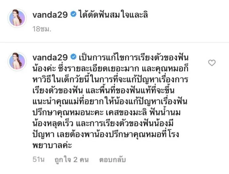งานนี้แฟนๆ พี่ป้าน้าอาที่ติดตาม น้องมะลิ มาตั้งแต่ยังเด็ก ต่างก็เข้ามาคอมเมนต์ดีใจกับน้องที่จะได้จัดฟันสักที และบางคนก็เกิดความสงสัยว่า คุณหมอให้เริ่มจัดฟันได้ตั้งแต่กี่ขวบ เพราะน้องมะลิเพิ่งจะ 6 ขวบ เหมือนฟันแท้ยังขึ้นไม่ครบ