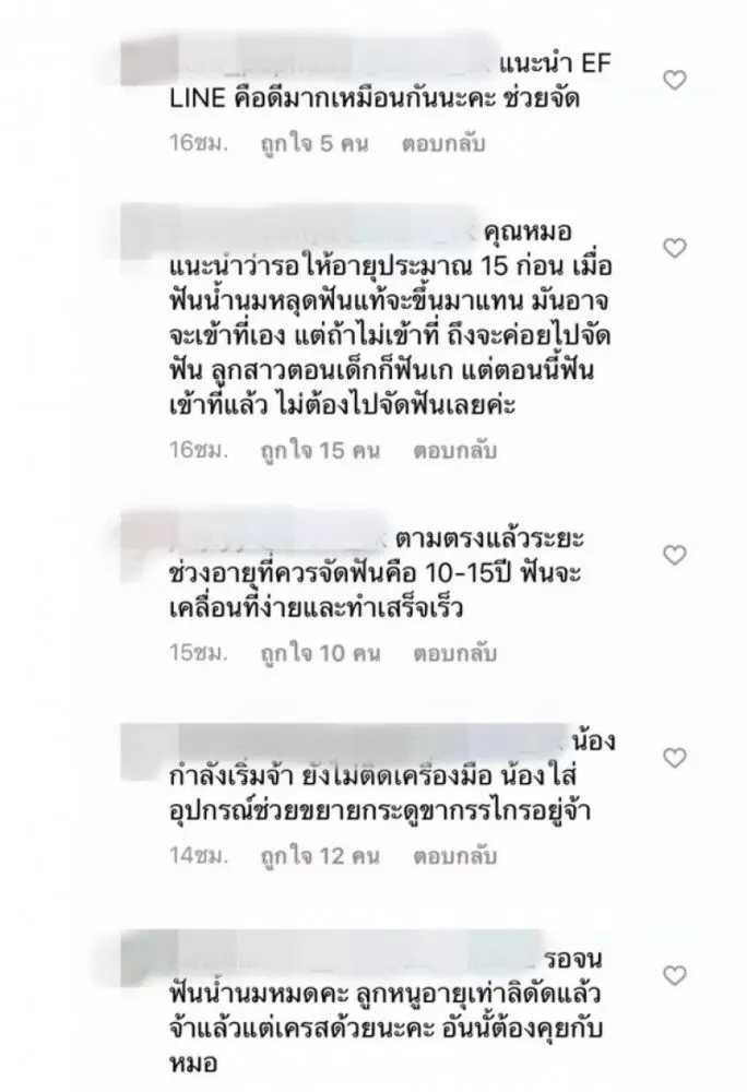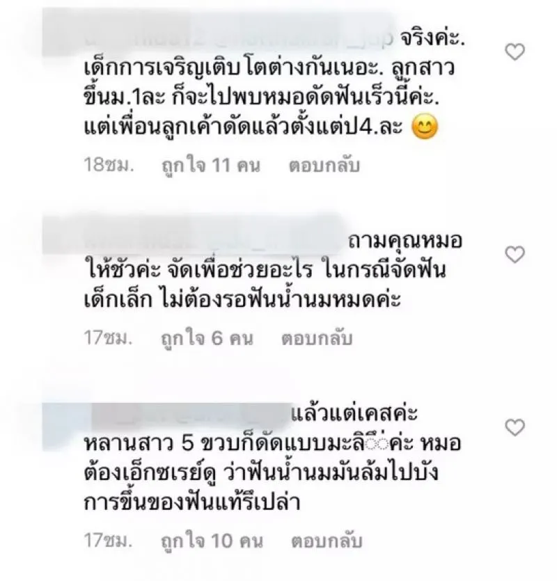 จากนั้นก็ได้มีคนก็เข้ามาบอกว่า อยากรู้เหมือนกัน เพราะคุณหมอเคยแนะนำว่ารอให้ฟันน้ำนมหลุดหมดปากก่อน แต่บางส่วนก็บอกว่า แล้วแต่บางเคสด้วย