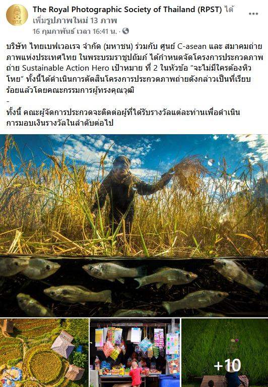 บริษัท ไทยเบฟเวอเรจ จำกัด (มหาชน) ร่วมกับ ศูนย์ C-asean และ สมาคมถ่ายภาพแห่งประเทศไทย ในพระบรมราชูปถัมภ์ ได้กําหนดจัดโครงการประกวดภาพถ่าย Sustainable Action Hero เป้าหมาย ที่ 2 ในหัวข้อ “จะไม่มีใครต้องหิวโหย” ทั้งนี้ได้ดำเนินการตัดสินโครงการประกวดภาพถ่ายดังกล่าวเป็นที่เรียบร้อยแล้วโดยคณะกรรมการผู้ทรงคุณวุฒิ