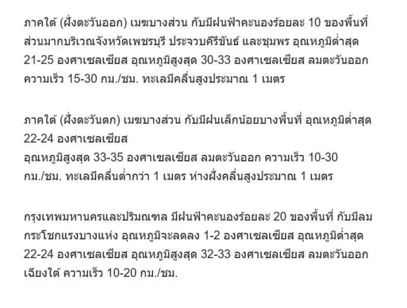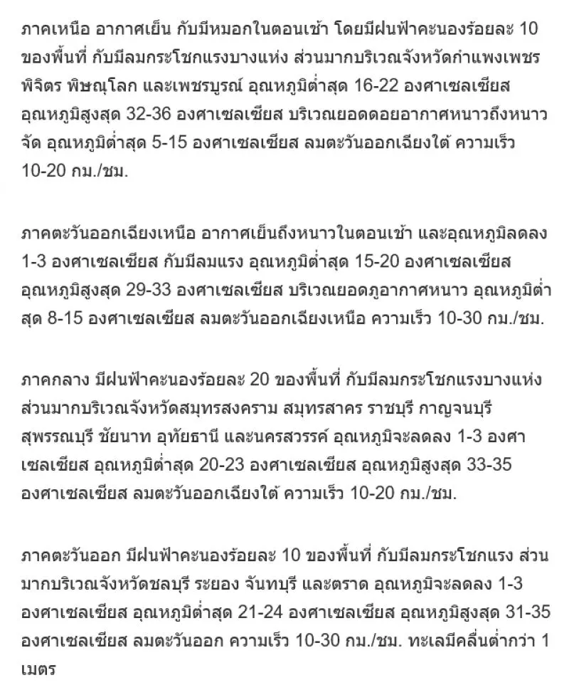 วันที่ 18 ก.พ.2564 กรมอุตุนิยมวิทย า พย ากรณ์อากาศ 24 ชั่วโมงข้างหน้า ประเทศไทยตอนบนจะมีฝนฟ้าคะนอง และลมกระโชกแรงเกิดขึ้นเป็นบางพื้นที่ หลังจากนั้นอุณหภูมิจะลดลง 1-3 องศาเซลเซียส เนื่องจากบริเวณความกดอากาศสูงหรือมวลอากาศเย็นกำลังปานกลางจากประเทศจีนได้แผ่ลงมาปกคลุมภาคตะวันออกเฉียงเหนือของประเทศไทยและทะเลจีนใต้แล้ว