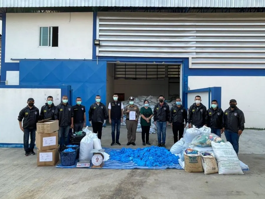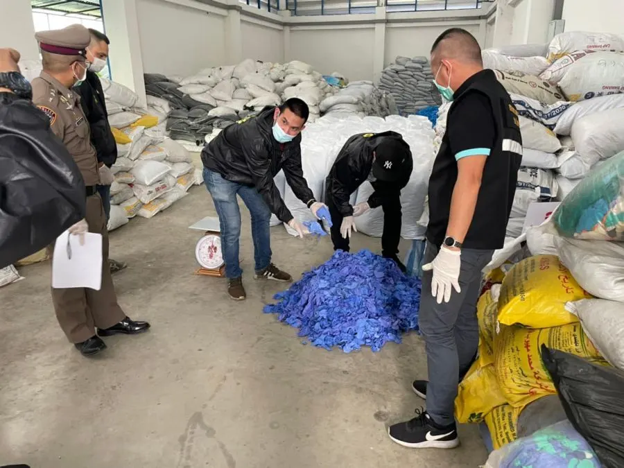 วันที่ 18 กุมภาพันธ์ ตำรวจเข้าตรวจค้นโกดังเลขที่ 99/3 ต.ลาดหลุมแก้ว อ.ลาดหลุมแก้ว จ.ปทุมธานี หลังมีผู้ร้องเรียนว่ามีผู้นำถุงมือยางที่ใช้แล้วมาซักล้างและคัดแยกที่โกดังแห่งนี้ให้เหมือนสินค้าใหม่และนำมาหลอกขายในราคาถูก โดยพบหญิงสาว อายุ 53 ปี แสดงตัวเป็นผู้ดูแลโกดัง นำเจ้าหน้าที่เข้าตรวจค้น ผลการตรวจ พบกองขยะถุงมือยางใช้แล้วไม่ได้คุณภาพบรรจุในกระสอบหลายใบและยังมีถุงมือที่กำลังทำความสะอาดเพื่อรอบรรจุ ประมาณ 37 ตัน มูลค่ากว่า 6 ล้านบาท จึงอายัดไว้เป็นของกลาง