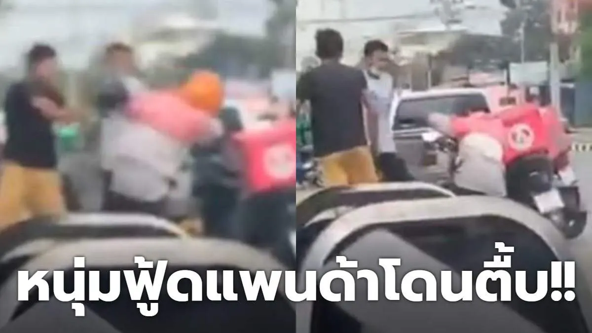 หนุ่มฟู้ดแพนด้าโดนกระทืบ!! เหตุแค่ขับสวนกัน