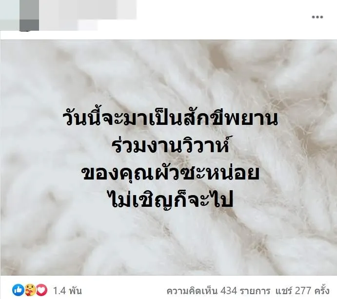 เรียกได้ว่าเป็นอีกหนึ่งเรื่องราวที่โซเชียลเข้ามาแสดงความเห็นกันเป็นจำนวนมาก หลังมีผู้ใช้เฟสบุ๊ครายหนึ่ง ออกมาโพสต์คลิปขณะนำทะเบียนสมรสไปงานแต่งงานของสามีตัวเอง ซึ่งกำลังเข้าพิธีรดน้ำสังกับผู้หญิงคนอื่นทั้งที่ตัวเองก็ยังไม่ได้หย่าขาด งานนี้ทำเอาโลกออนไลน์วิพากวิจารณ์กันเป็นจำนวนมาก