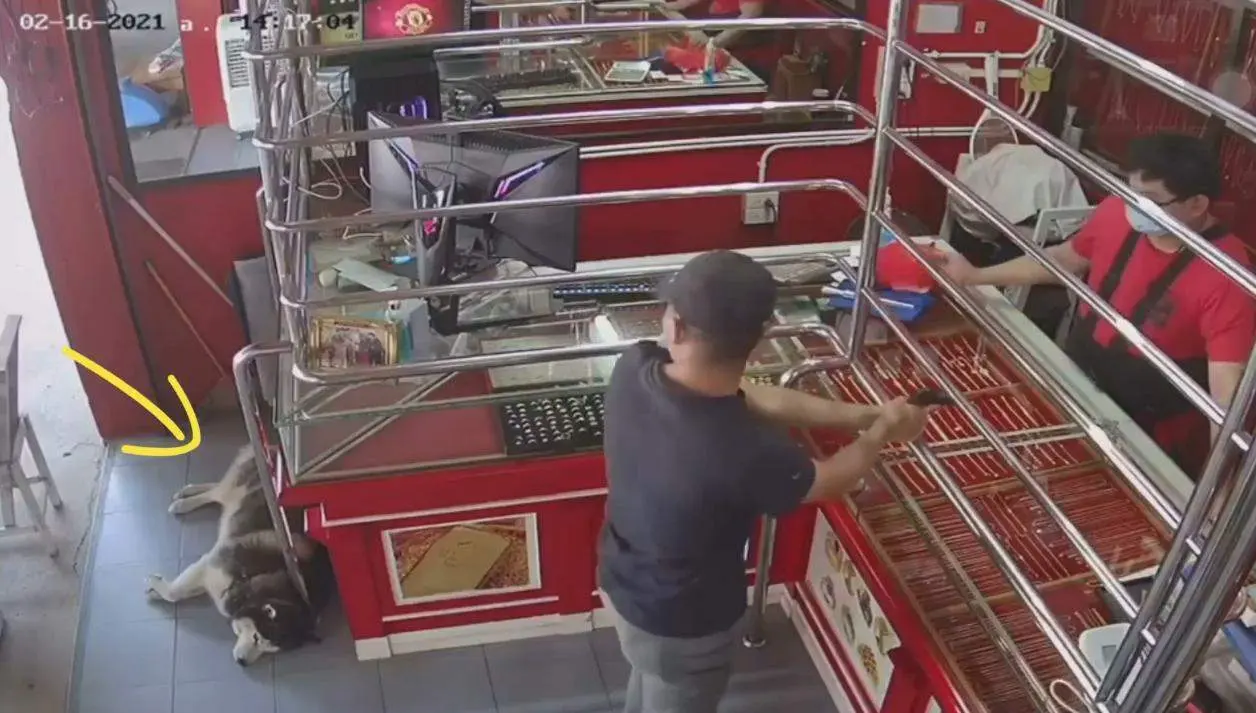 เปิดคลิปชัดๆ นาทีปล้นร้านทอง แต่หมานอนเฉย