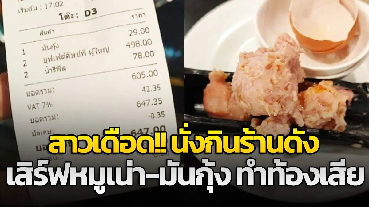 สาวเดือด!! นั่งกินร้านดัง เสิร์ฟหมูเน่า-มันกุ้ง ล่าสุดท้องเสีย