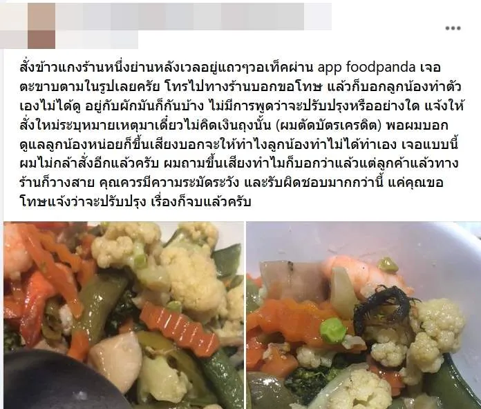ดราม่า! หนุ่มสั่งข้าวแกงออนไลน์ เจอตัวประหลาด ร้านโร่ขอโทษ แต่ไม่จบ