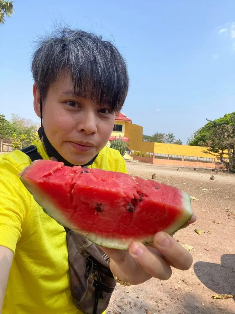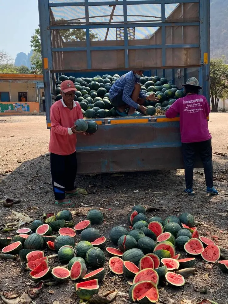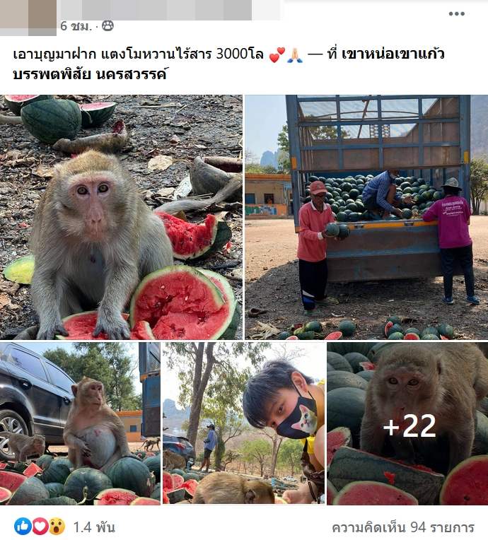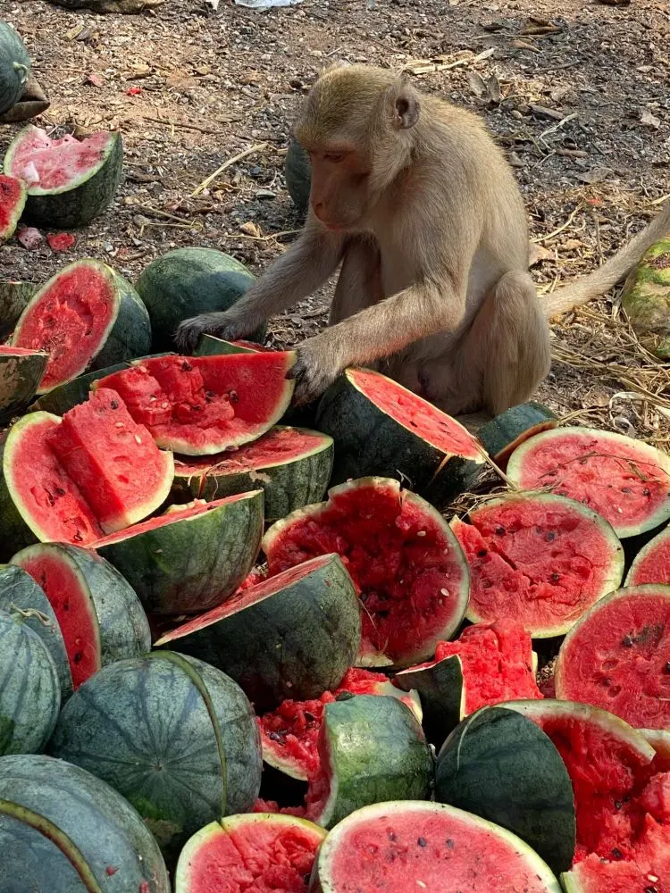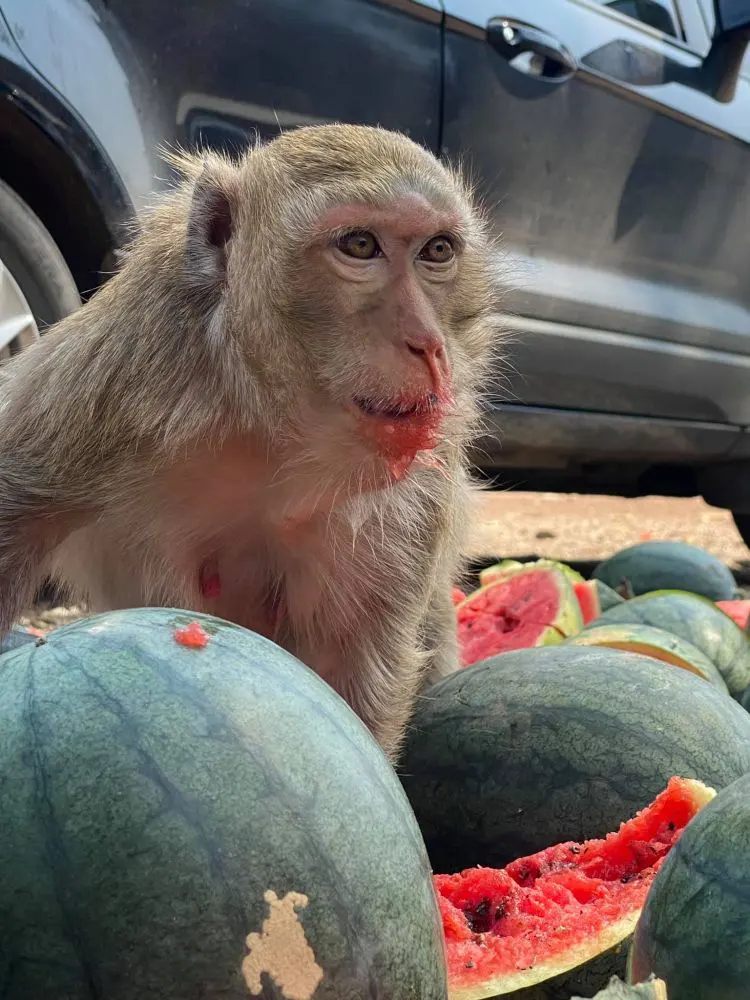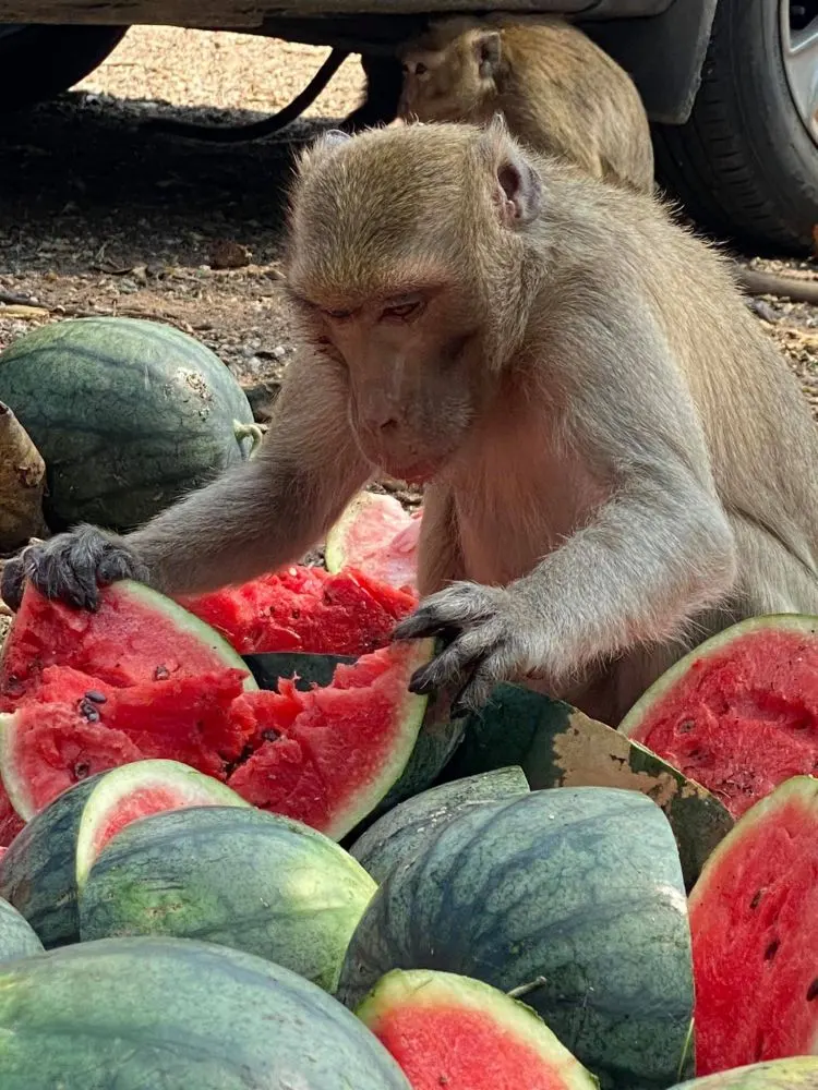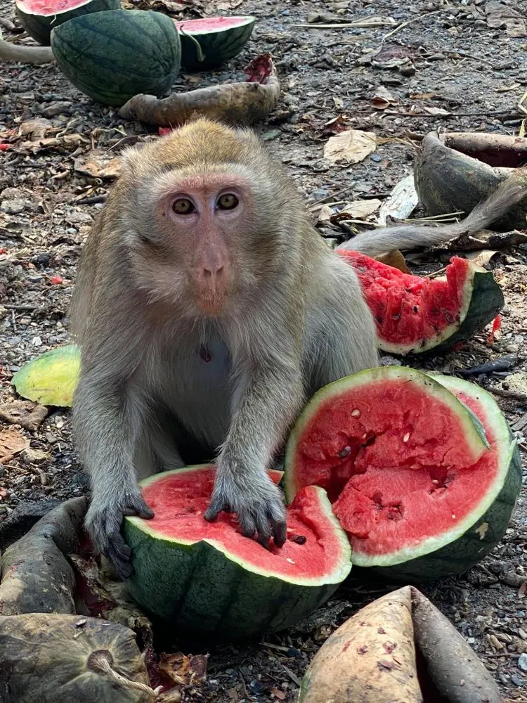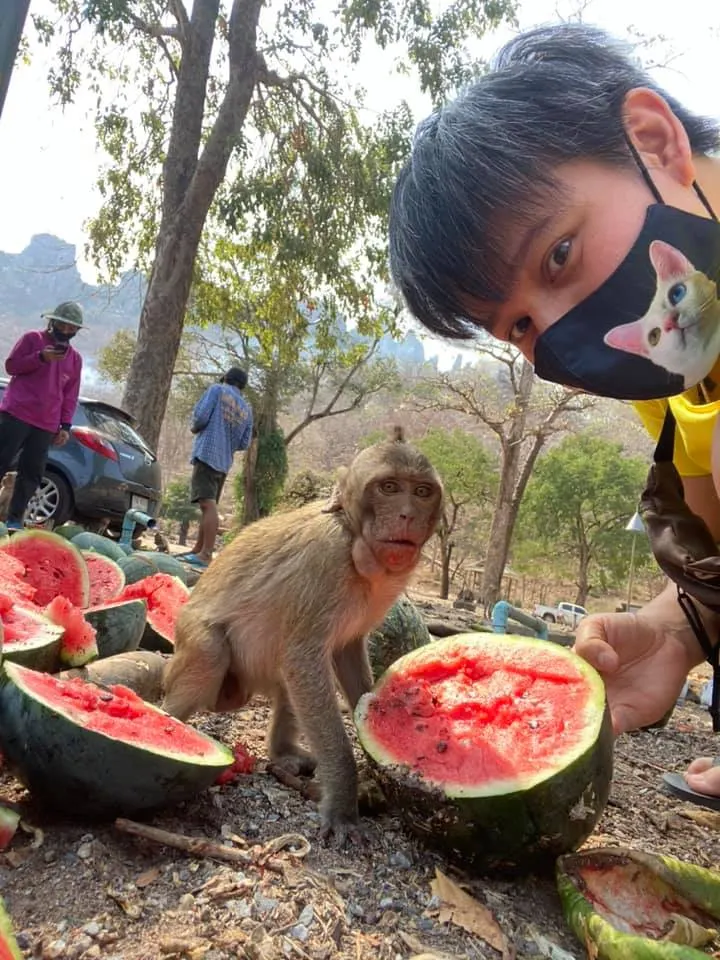 หนุ่มหล่อใจบุญ แจกแตงโม 3,000 กิโล ให้กับน้องลิง