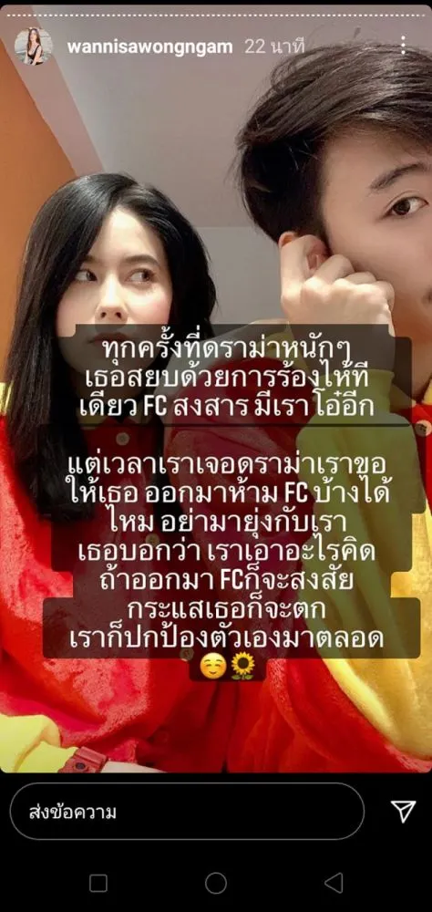 พอ FC สงสัย ก็ให้ไปถ่ายรูปกับผู้ชายคนอื่นบอกว่าเป็นแฟน