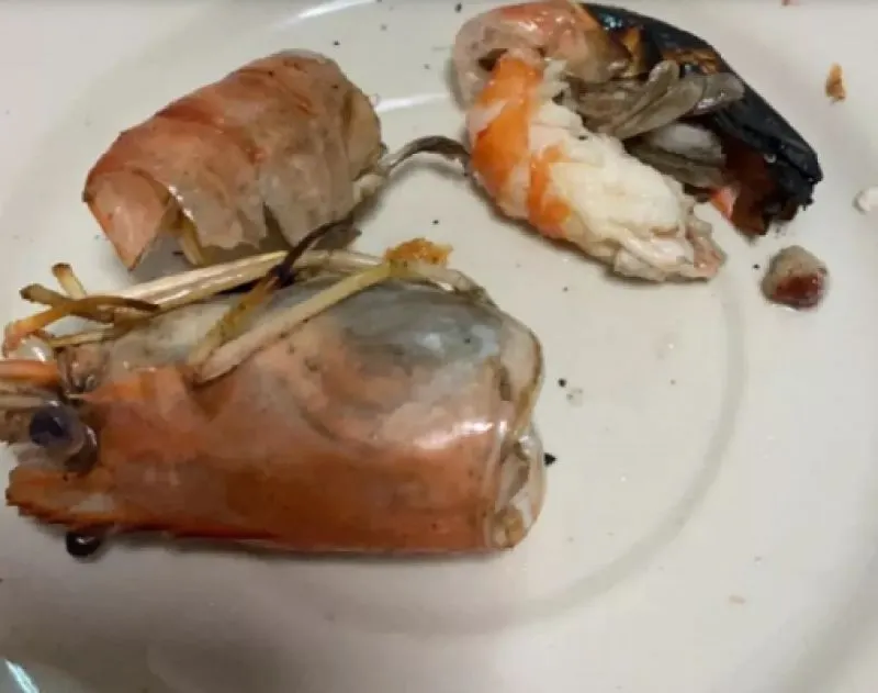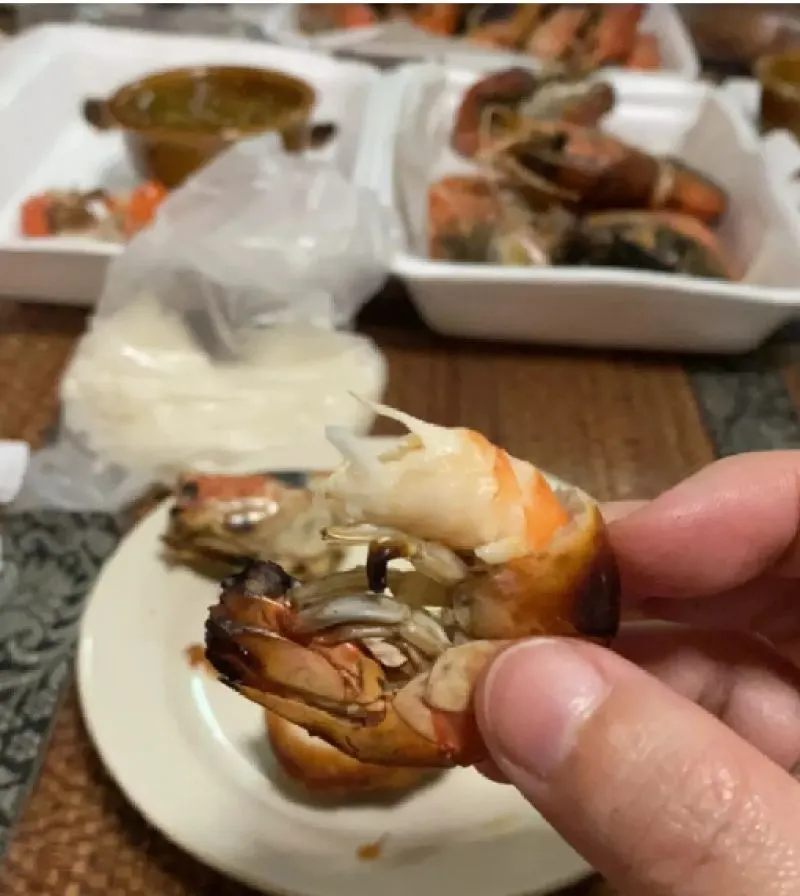 แต่กุ้งที่ได้นั้นอยู่ในสภาพแย่ ไม่สด ตัวแห้งลีบ และส่วนหัวกุ้งเหมือนจะเน่าแล้ว กินได้ไม่กี่ตัว ก็ต้องทิ้ง