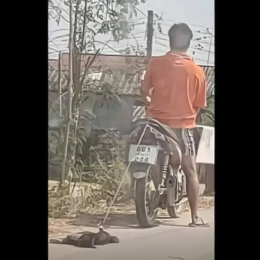 หนุ่มใจเหี้ยม จับแมวมัดท้ายมอเตอร์ไซค์ ลากไปทั้งตัว