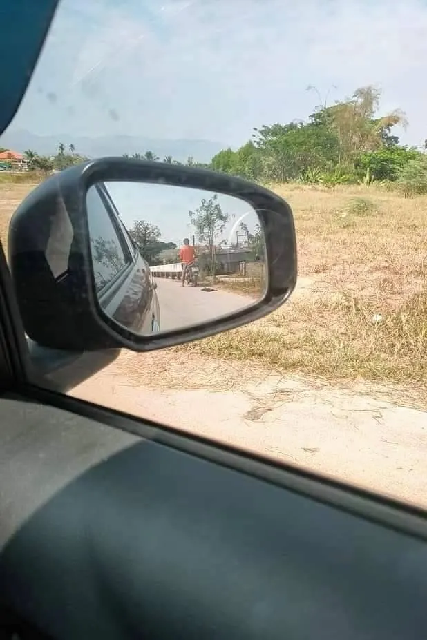 เฟสบุ๊ก ทศพร หาญประเสริฐ โพสต์ภาพ ขณะเจอชายขี่รถจยย.ลากซากแมวโดยมักที่ดท้าหน้าทั้งสองข้างผูกกับท้ายรถ โดยระบุว่า