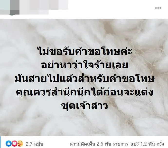 ล่าสุดเมียหลวงได้ออกมาโพสต์ถึงเจ้าสาวแต่งซ้อน หลังออกมาขอโทษ โดยระบุว่า..