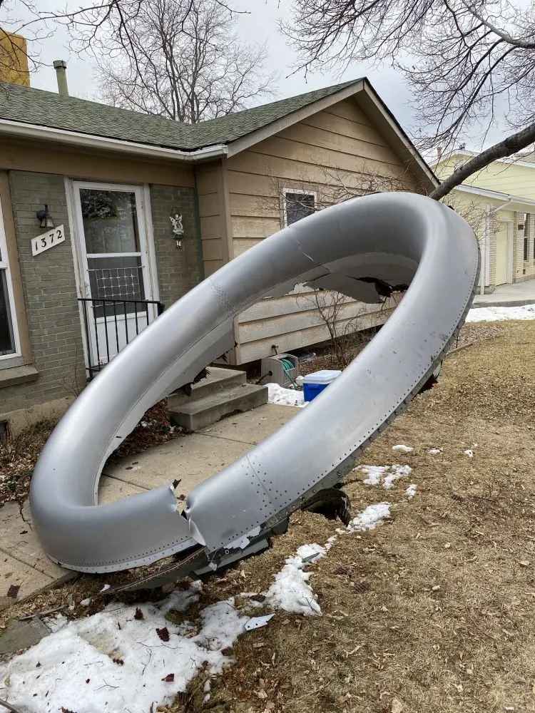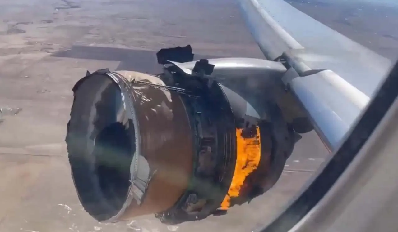 ภาพเหตุการณ์ United airline โบอิ้ง 777-200 ไฟล์ท 328 จากเดนเวอร์-โฮโนลูลู เกิดเครื่องยนต์ไฟลุกกลางอากาศส่งผลให้ ชิ้นส่วนหลุดไปถูกบ้านประชาขนด้านล่างได้รับความเสียหาย