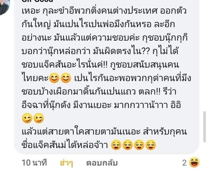 ล่าสุด เหมือนจะไม่จบง่ายๆ เมื่อผู้ใช้เฟสบุ๊คท่านหนึ่งได้โพสต์ภาพข้อความของแฟนคลับ นุ๊ก ธนดล ที่ออกมาโต้กลับฝั่ง แฟนคลับ แจ๊คสัน GOT7 เรื่องความหล่อ โดยระบุว่า..