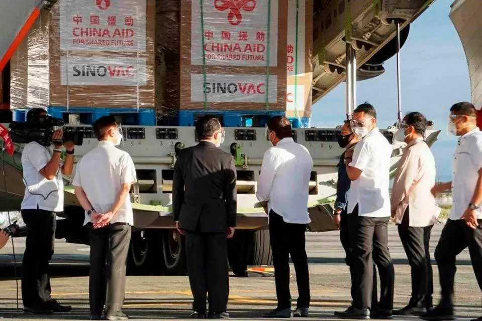 วันนี้ฟิลิปปินส์ได้รับวัคซีน "CoronaVac" ซึ่งเป็นวัคซีนต้านไวรัสโควิด19 ของ "บริษัทซิโนแวกไบโอเทค" ที่รัฐบาลจีนมอบให้ โดยวัคซีนดังกล่าว เป็นวัคซีนชุดแรกของประเทศฟิลิปปินส์พิธีส่งมอบวัคซีน ได้ถูกจัดขึ้นที่ฐานทัพอากาศ ในกรุงมะนิลา โดยมีประธานาธิบดี "โรดริโก ดูเตอร์เต" ได้เดินทางมาเข้าร่วมในพิธีด้วยตนเอง