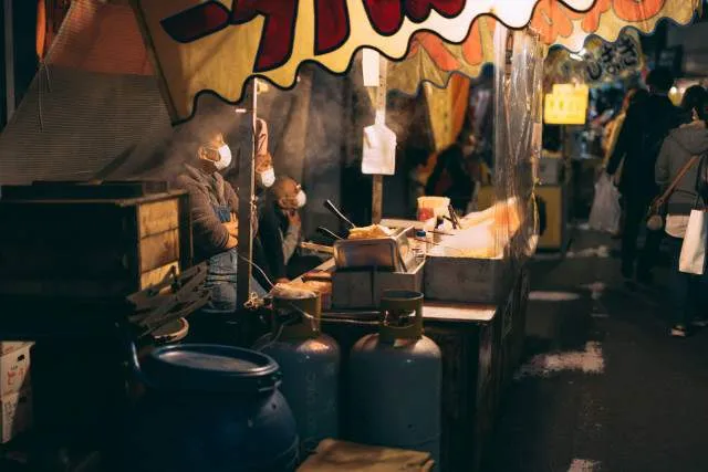 แผงขายอาหารของญี่ปุ่น ผู้ขายมักจะเป็นผู้ชาย โดยร้านแผงลอยจะโผล่ขึ้นมา ใกล้ๆกับศาลเจ้าและวัด ในช่วงเทศกาลพิเศษ เช่น เทศกาลฮัตสึโมเดะ และ เทศกาลฤดูร้อน ในขณะที่หลายคนดำเนินการ โดยธุรกิจในท้องถิ่น ซึ่งถูกกฎหมาย แต่บางกลุ่มก็ยังอยู่ภายใต้ การดูแลของกลุ่มยากูซ่า