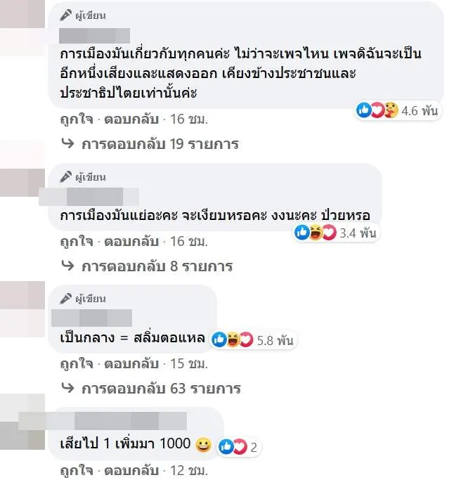 การเมืองมันเกี่ยวกับทุกคนค่ะ ไม่ว่าจะเพจไหน เพจดิฉันจะเป็นอีกหนึ่งเสียงและแสดงออก เคียงข้างประชาชนและประชาธิปไตยเท่านั้นค่ะ