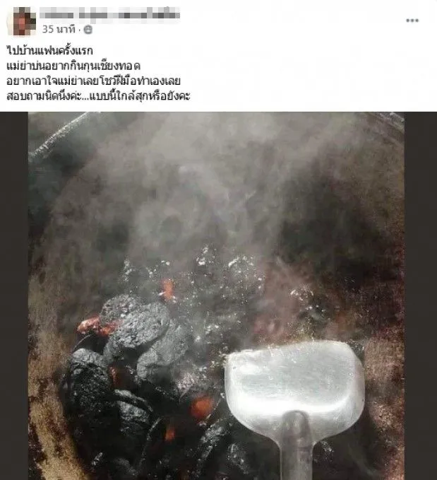สาวไปบ้านแฟนครั้งแรก ได้โชว์ฝีมือทำอาหาร เมื่อแม่ย่าอยากกิน กุนเชียงทอด แต่สงสัยแบบนี้ใกล้สุกหรือยัง