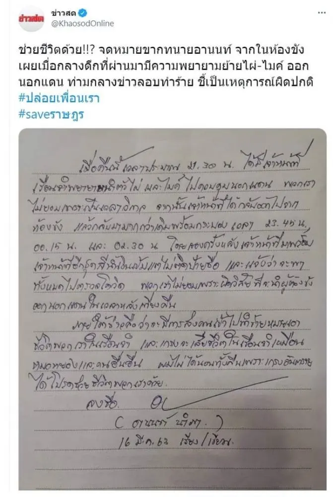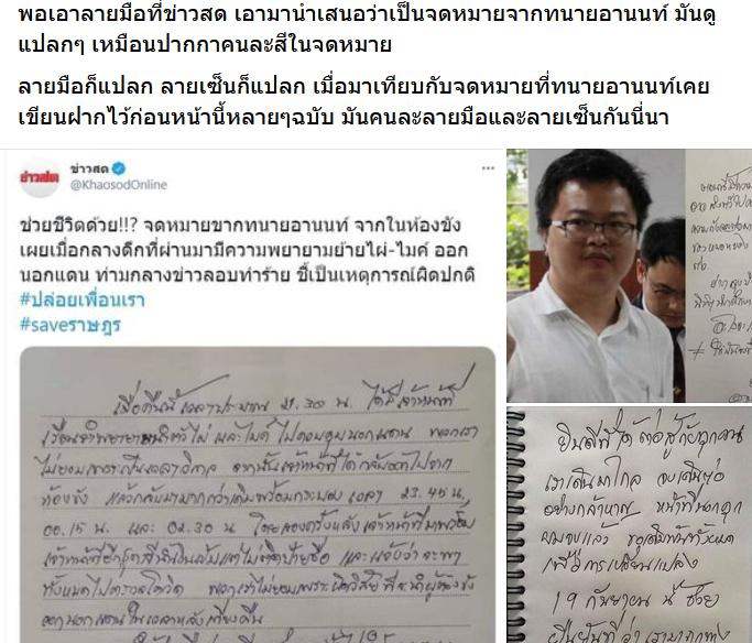 พอเอาลายมือที่ข่าวสด เอามานำเสนอว่าเป็นจดหมายจากทนายอานนท์ มันดูแปลกๆ เหมือนปากกาคนละสีในจดหมาย
