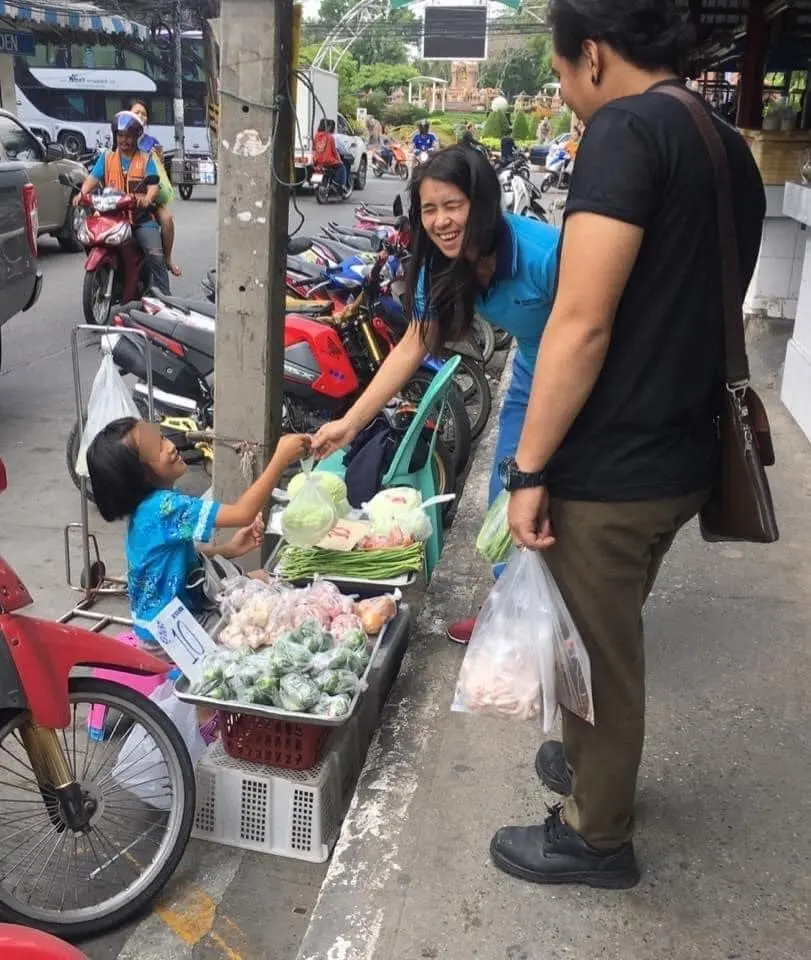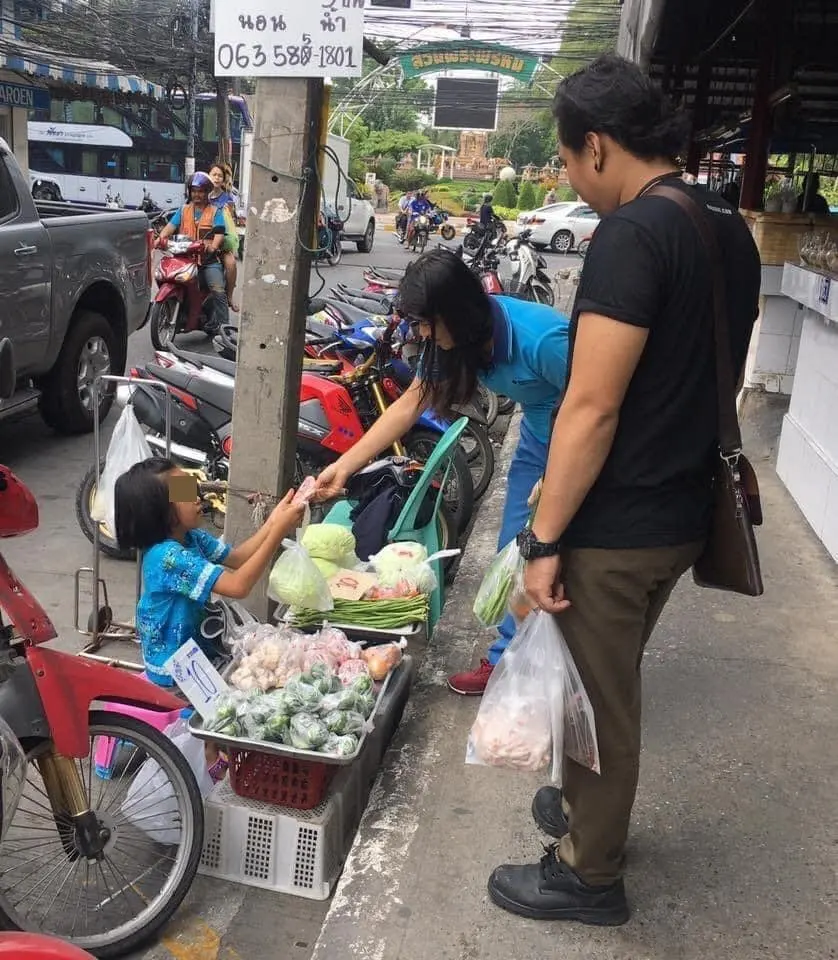 มาตลาดศรีภาชนะ(ตลาดพระพรมในเครือสหพัฒน์)อย่าลืมแวะอุดหนุนผักสดๆ น้องหนูคนนี้นะ ขยันตั้งแต่เล็กๆ น่ารักดีครับ