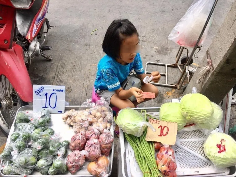 "มาช่วยยายขายของช่วงปิดเทอมค่ะ"
