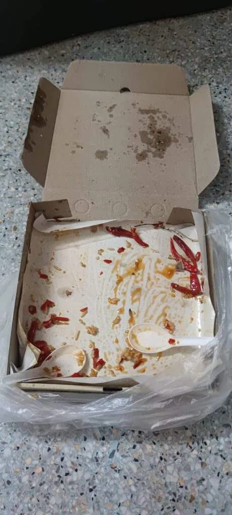ซึ่งในต่อมาลูกค้าท่านนี้ก็ได้คอมเม้นรีวิวหลังจากที่สั่งอาหารโคตรเผ็ด พริกเยอะเต็มกล่องขนาดนั้น สั่งไปทานจริงไม่ใช่แค่ถ่ายรูป ทานจริงแถมบอกเลยว่า ไม่ได้เขี่ยพริกทิ้ง