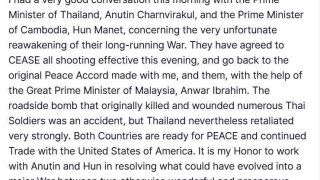 "ทรัมป์" อ้าง "ไทย-กัมพูชา" ตกลงหยุดยิงแล้ว! ลั่นทหารไทยถูกระเบิดแค่อุบัติเหตุ