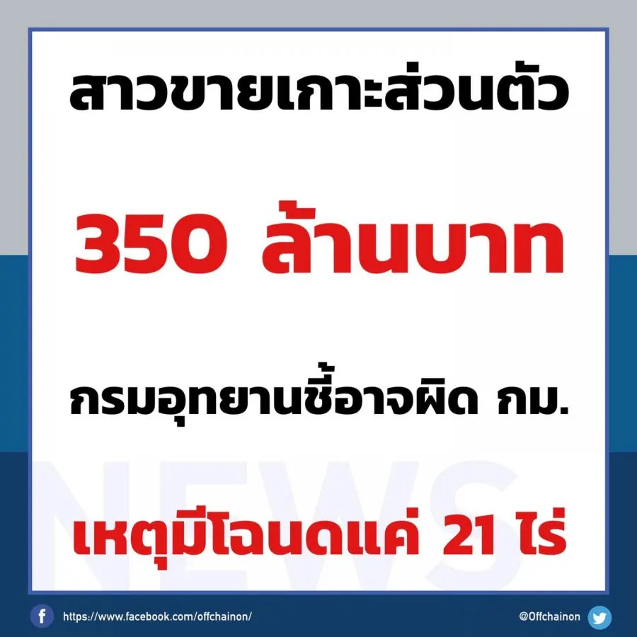 ล่าสุด หัวหน้าอุทยานแห่งชาติหมู่เกาะช้าง จ.ตราด ตรวจสอบพบว่า เนื้อที่บนเกาะหวายที่มีโฉนดมีแค่ 21 ไร่