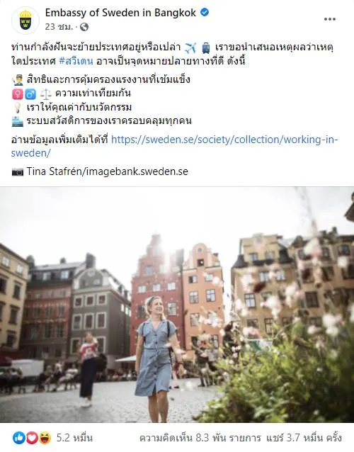 ย้ายไปสวีเดนกันเถอะ ! สถานทูตสวีเดน ออกมาชวนคนไทยไปอยู่สวีเดน พร้อมบอกแนบเหตุผล