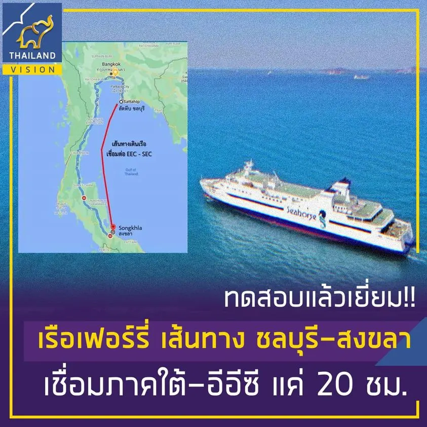 ทดลองแล้ว เรือเฟอร์รี่เส้นทาง ชลบุรี-สงขลา ใช้เวลาเดินทางแค่ 20 ชั่วโมง