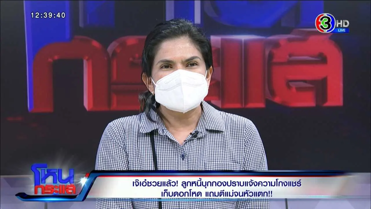 รายการโหนกระแสวันที่ 1 มิ.ย. 64 "หนุ่ม กรรชัย กำเนิดพลอย" ในฐานะผู้ดำเนินรายการ ผลิตในนามบริษัท ดีคืนดีวัน จำกัด ออกอากาศทุกวันจันทร์-ศุกร์ เวลา 12.35 น. ทางช่อง 3 กดเลข 33 สัมภาษณ์ เจ๊เอ๋ถึงประเด็นดังกล่าว มานั่งกับ “แบงค์” ลูกชายและ “ตา” ลูกหนี้ อีก 1 คน รวมทั้งคู่กรณีเจ๊เอ๋ มี ทนายไพศาล เรืองฤทธิ์, คุณฮาร์ท น้องชายเจ๊เอ๋, คุณดี้ ประสานงานช่วยเหลือ, คุณผึ้ง , คุณส้ม และ โกบอย ที่รับเรื่องร้องเรียนมา และพาประสานไปที่กองปราบ