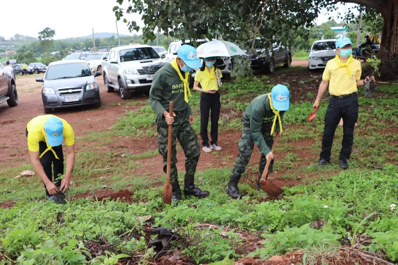 การปลูกต้นไม้ในวันนี้รณรงค์ปลูกต้นไม้ Green Day รวมใจไทยปลูกต้นไม้เพื่อแผ่นดินสืบสานสู่ 100 ล้านต้นอำเภอพบพระ จังหวัดตาก ประจำปี พศ.2564บริเวณฐานพระ บ้านห้วยนกแล ตำบลช่องแคบ อำเภอพบพระจังหวัดตาก