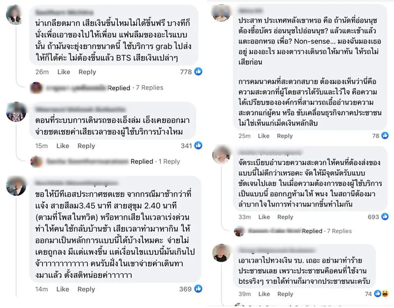 -“ตอนระบบการเดินรถล่ม เคยออกมาจ่ายค่าชดเชยค่าเสียเวลาของผู้ใช้บริการบ้างไหม”, -“คนที่เขามาส่งหรือรับของได้ที่บีทีเอส แสดงว่าต้องใช้บริการเป็นประจำอยู่แล้ว เรื่องเล็กๆ น้อยๆ แค่นี้ทำเป็นเด็กหวงที่ไปได้”