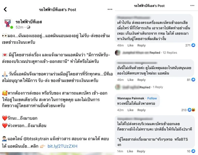 บีทีเอส ออกประกาศห้ามรับ-ส่งของ ข้ามเขตชำระเงิน ต้องอยู่ในเขตเดียวกันเท่านั้น คนแห่คอมเมนต์ไม่เห็นด้วย